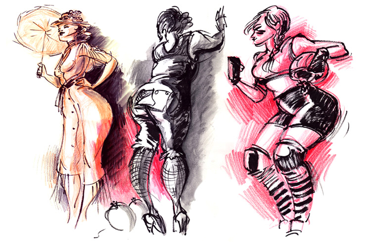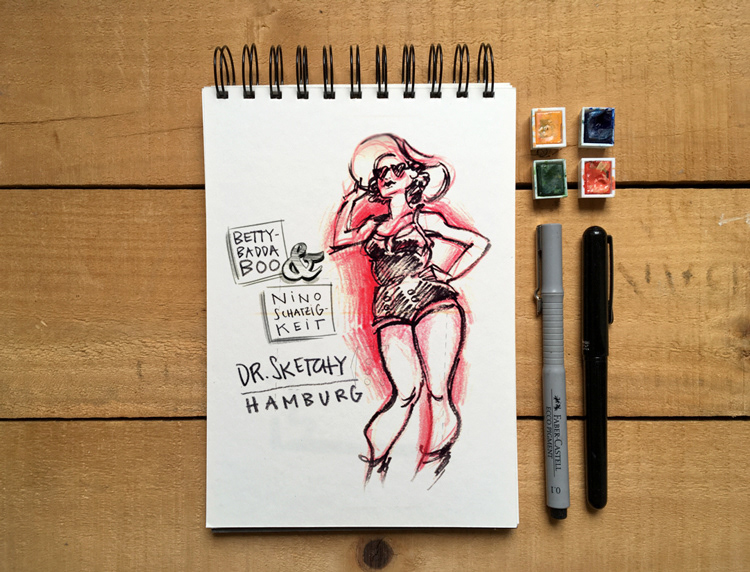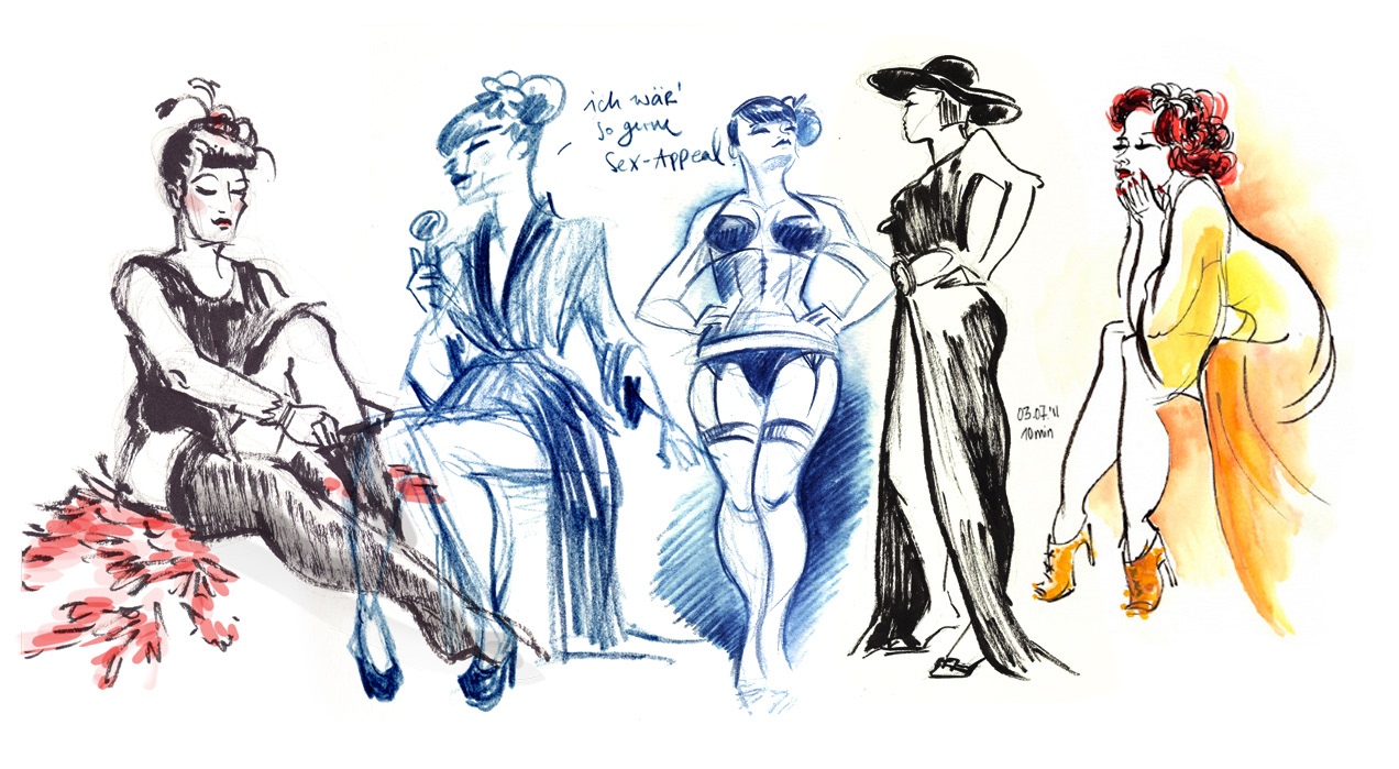 Zwei Modelle aus der internationalen Burlesque-Szene stehen an diesen Abenden in kreativen Kostümen (mehr oder weniger) Modell für Zeichner, Künstler und die, die es werden wollen. Mitmachen kann jeder der Zeit und Lust hat. Die Posen dauern zwischen 5-15 Min. und bei einem kleinen Zeichenwettbewerb gibt es zwischendurch natürlich auch etwas Kurioses zu gewinnen.